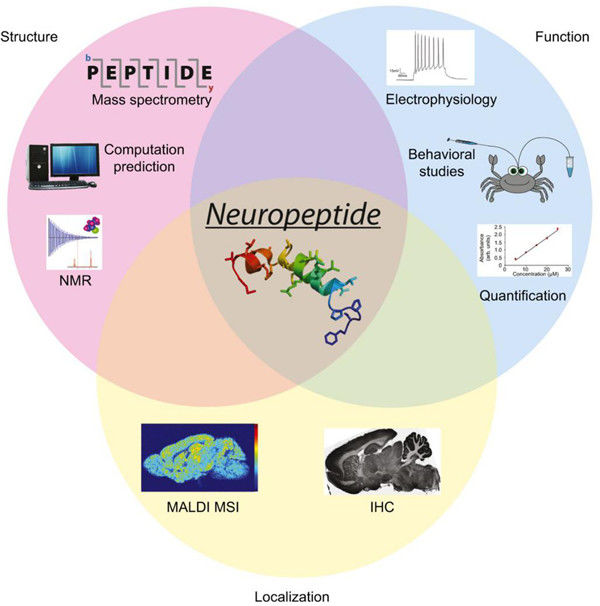 神經(jīng)肽是由稱為前原肽的大而無活性前體蛋白合成的,該蛋白被切割成幾種活性肽。前原肽通常產(chǎn)生相同肽或許多不同肽的多個拷貝。肽序列的重復(fù)數(shù)經(jīng)常在整個進(jìn)化過程中發(fā)生變化,并成為遺傳變異的溫床。大腦中的肽表達(dá)可能具有高度選擇性和特異性。與選擇性表達(dá)相反,肽活性可能是廣泛而持久的。神經(jīng)肽通常與其他肽和傳統(tǒng)的神經(jīng)遞質(zhì)共釋放。