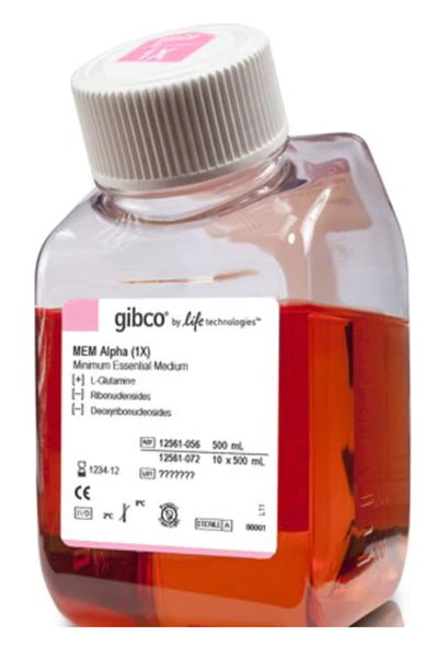 MEM α 不含蛋白、脂質或生長因子。因此,MEM α 需要補充劑,通常添加 10% 胎牛血清 (FBS)。MEM α 使用碳酸氫鈉緩沖系統 (2.2 g/L),因此需要 5-10% CO2 環境來維持生理 pH 值。粉末形式的 Gibco? 細胞培養基在配制時需要補充碳酸氫鈉、調節 pH 并過濾。
