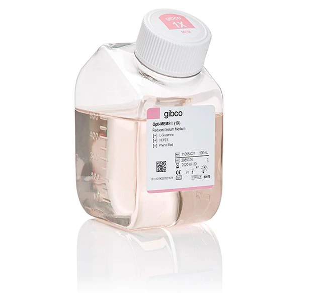 Opti-MEM? I 培養基是一種含有胰島素、轉鐵蛋白、次黃嘌呤、胸苷和微量元素的獨特培養基。這些附加組分可使血清添加量減少至少 50%。Opti-MEM? I 培養基使用碳酸氫鈉緩沖體系 (2.4 g/L),因此需要 5–10% CO2 環境來維持生理 pH 值。