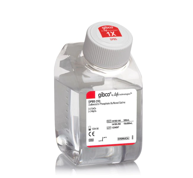 Dulbecco 磷酸鹽緩沖溶液 (DPBS) 是一種平衡鹽溶液,適用于各種細胞培養應用,例如解離前清洗細胞、運輸細胞或組織樣品、稀釋細胞進行計數和制備試劑。 細胞解離前,需采用不含鈣和鎂的制劑從培養物中沖洗掉螯合劑。