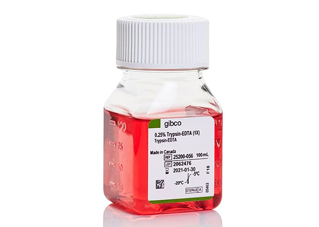 這種液體胰蛋白酶配方內含 EDTA 和酚紅。Gibco 胰蛋白酶-EDTA 由胰蛋白酶粉(來自豬胰腺的蛋白酶輻照混合物)制成。鑒于其消化強度,胰蛋白酶被廣泛用于細胞解離、常規(guī)細胞培養(yǎng)傳代以及初生組織解離。解離所需的胰蛋白酶濃度因細胞類型和實驗要求而異。請參閱Gibco 胰蛋白酶溶液和建議解離條件的完整說明。
