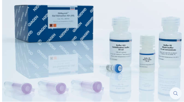 QIAquick Gel Extraction Kit包含離心柱、緩沖液和收集管,用于從凝膠(多至400 mg凝膠條)或酶促反應物中純化DNA片段。通過簡單快速的結合、洗滌、洗脫步驟,使用30–50 μl洗脫體積即可純化得到70 bp–10 kb的DNA片段。通過內置的pH指示劑可容易確定DNA結合到離心柱的最佳pH值,整個過程可在QIAcube全自動核酸純化儀上自動化運行。